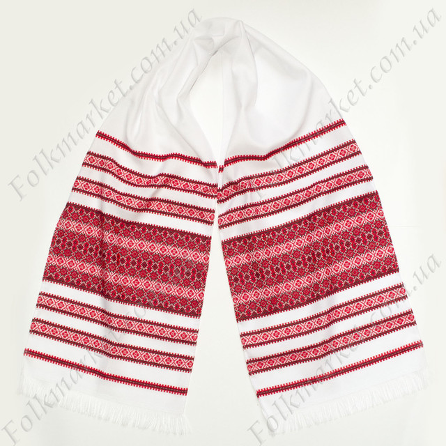 Червоний весільний рушник з вишивкою, який часто використовується в українських обрядах.